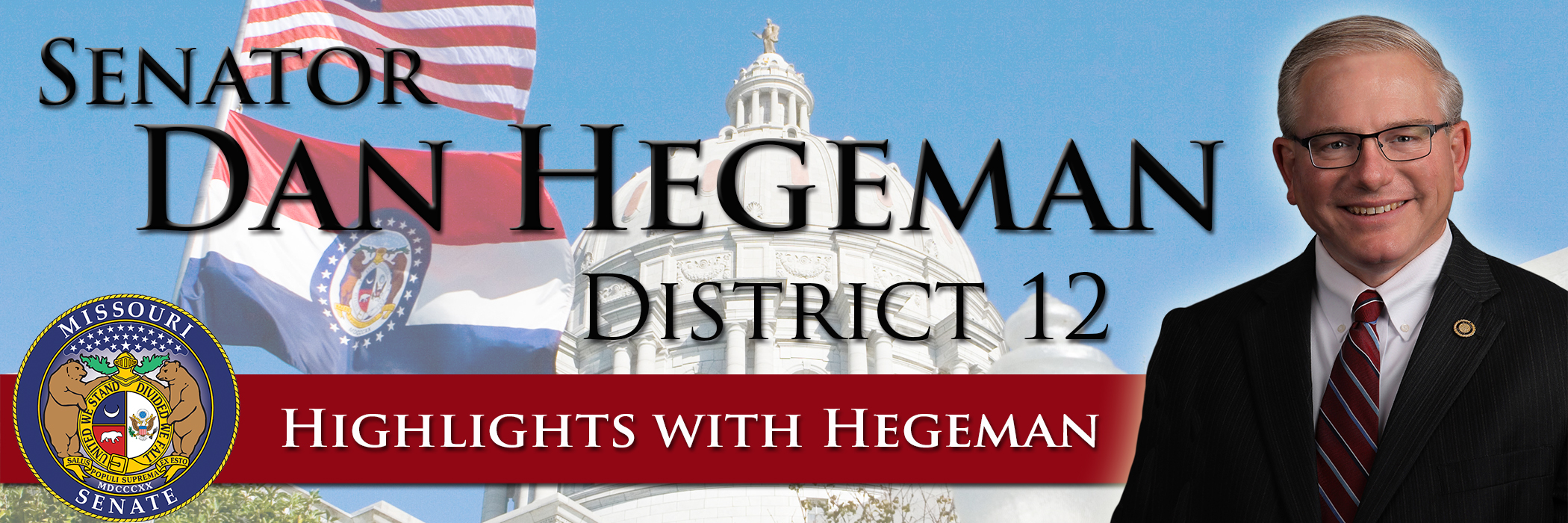 As always, please feel free to call, email or write with your ideas or concerns. My Capitol office number is (573) 751-1415, my email is dan.hegeman@senate.mo.gov and my mailing address is Room 332, State Capitol Building, Jefferson City, MO 65101.