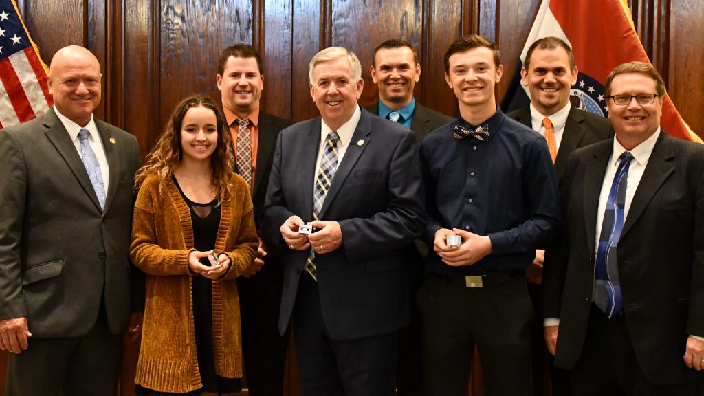 I, along with Gov. Mike Parson had the great opportunity to meet with students involved with Owensville’s STEM Team this week in the Missouri State Capitol. They also brought with them several of their specialty designed locks that won them a $100,000 grand prize through Samsung’s Solve for Tomorrow contest. Spending time with these students and seeing their successes only reinforces the need for capable young people to enter important STEM fields. With such bright futures ahead of them, I have no doubt in their ability to be the leaders and innovators of the future. Again, I congratulate these students on their hard work which will help keep schools safe and benefit their school for years to come. I look forward to seeing what the future holds in store for them.
