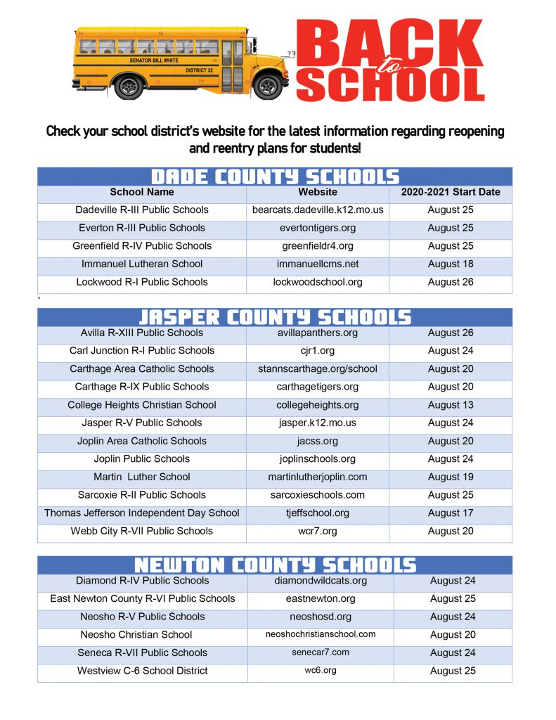 As schools begin to open, administrators will diligently monitor local COVID-19 outbreaks and conditions and respond accordingly. Below are some infographics about opening dates and safety for schools in our community. As parents, students and teachers begin the 2020-2021 school year, I want to take this opportunity to wish everyone a safe and successful start to the new year.