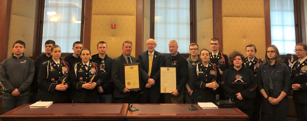 On Tuesday, Feb. 25, approximately 50 cadets from the Cardinal Battalion, Webb City’s Army Junior ROTC class, and their instructor, Lt. Col. Dustin Elder, visited the Capitol.  While they were here, I had the honor of introducing them on the Senate Floor and presenting them with a Senate Resolution for their Rifle Team’s accomplishments in a recent, highly competitive national championship.