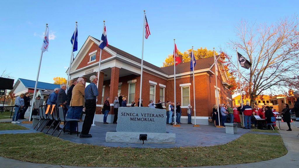 The Seneca Betterment Committee hosted a dedication ceremony for the newly expanded Veterans Memorial at City Hall on Nov. 11. I was honored to attend the event and say a few words to the audience. The Seneca High School choir sang the official songs of each branch of the armed services while its corresponding flag was raised.