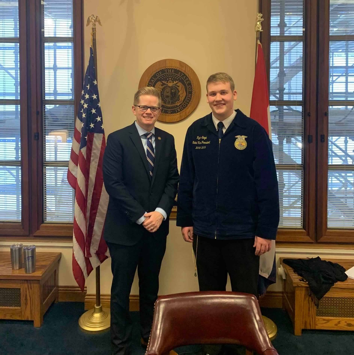 FFA member Ryan Siegel from Otterville with Senator Rowden