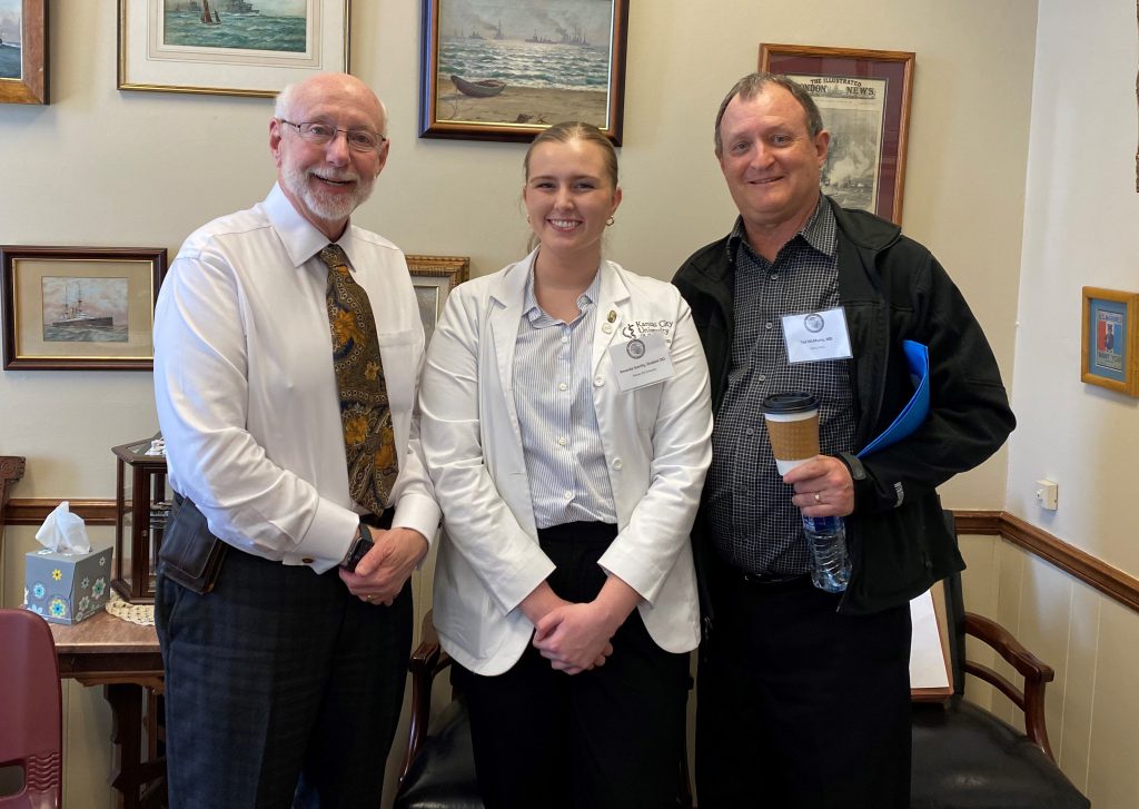 Senator White visits with Amanda Garrity, a medical student at Kansas City University in Joplin, and Dr. Ted McCurry, a physician at Mercy Hospital in Springfield.