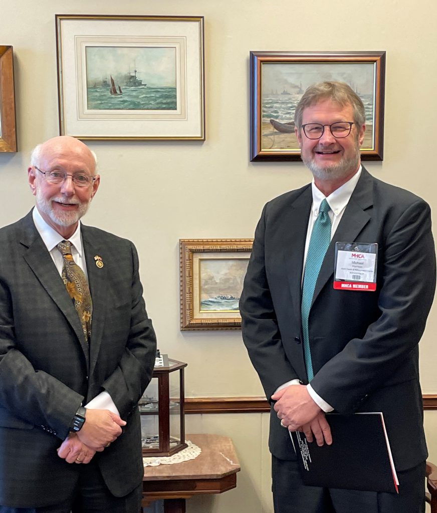 Senator White speaks with Mike Harrison about the Joplin Health and Rehabilitation Center.