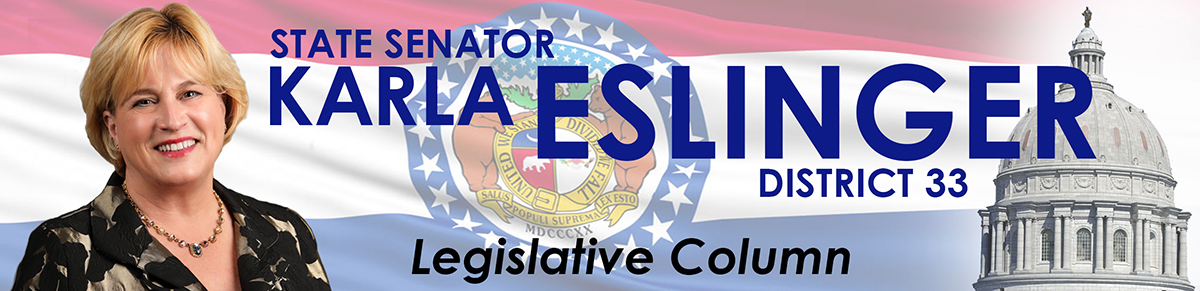 It is my honor to serve the residents of Douglas, Howell, Oregon, Ozark, Ripley, Texas, Webster and Wright counties in the Missouri Senate, and it’s always a pleasure to hear from friends and family back home. If I can help you in any way, please call my Capitol Office at 573-751-1882, or my District Office at 417-596-9011. You can also visit my webpage at www.senate.mo.gov/mem33, on Facebook: @SenatorKarlaEslinger, or follow me on Twitter: @seneslingermo.