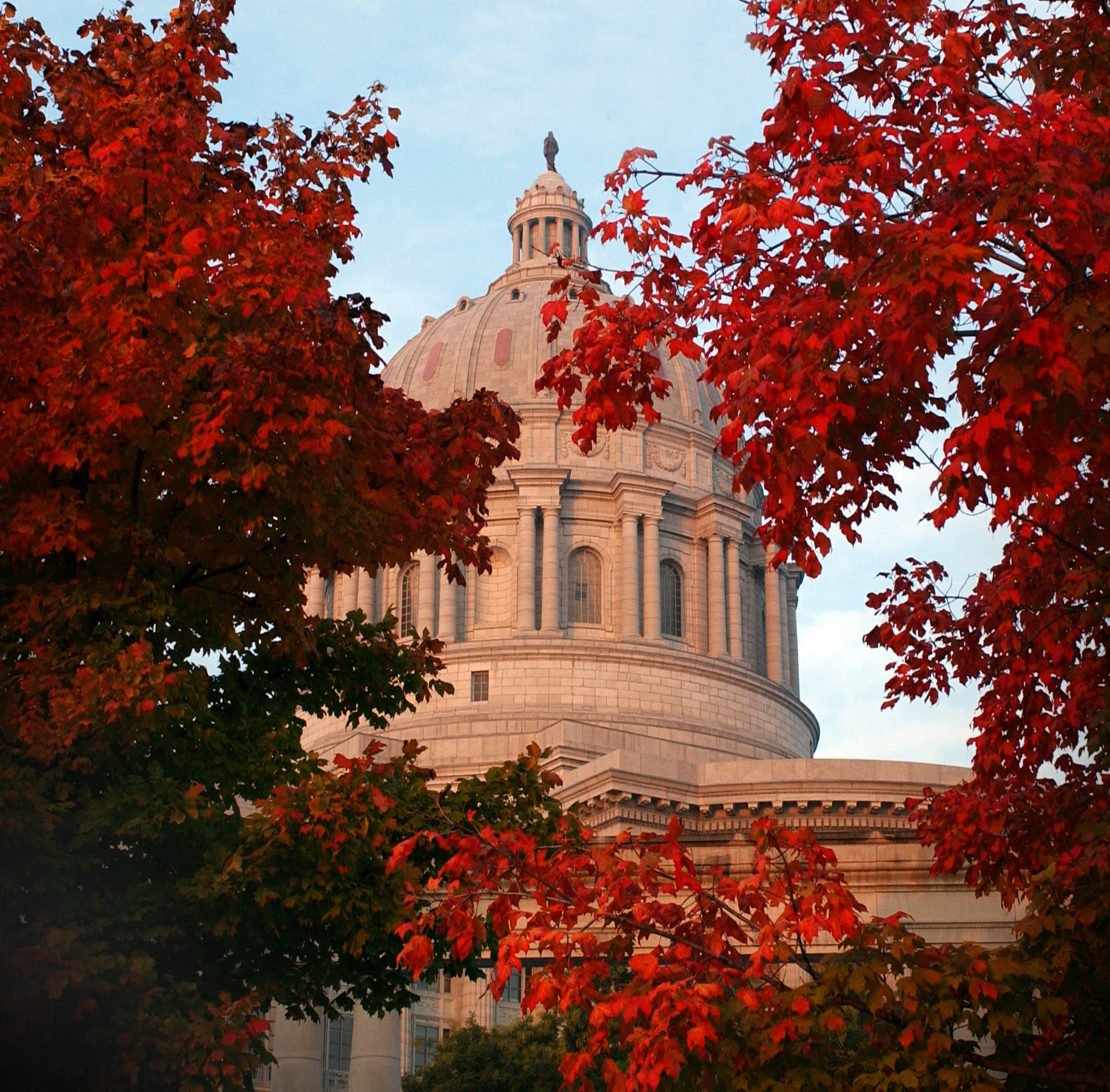 The fall colors help enhance the beauty of the State Capitol.