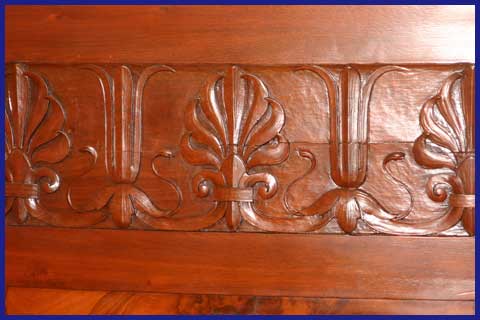 Moulding, in an array of scrolled fretwork and varied patterns, serves to define the chamber's interior borders. As with the carvings, every inch of millwork was carefully stripped, cleaned and painstakingly refinished.