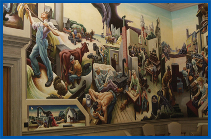 Thomas Hart Benton is one of the most notable artists from Missouri. "A Social History of Missouri" is located on the third floor of the State Capitol in the House Lounge.