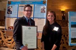 Shown above, Sen. Schaefer with Allison Siroky, a senior majoring in psychology, with her display “Parent-Child Communication May Encourage Academic Success in Adolescence.” |