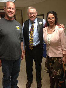 | Shown above, Representative Chris Kelly, D-Columbia, center, with Bill Kempker and Katherine Fox following the House Judiciary Committee hearing for Senate Bill 73 on Wednesday (4-17) afternoon. The legislation prohibits law enforcement from targeting motorcycles at roadside checkpoints. |
