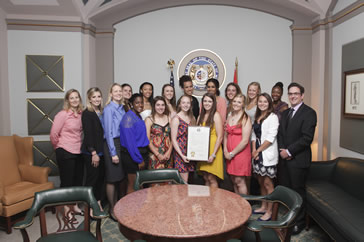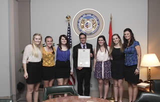 | Shown above, Sen. Schaefer with the Rock Bridge Bruins Ladies Basketball team on Wednesday, May 1, 2013. |