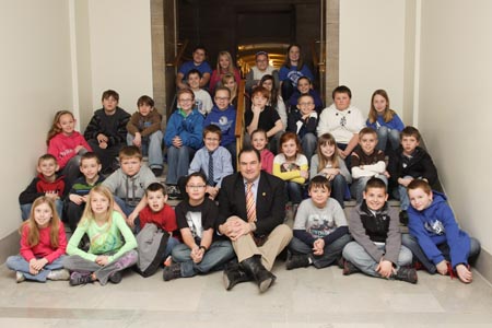 The State Third Place Boys Track teams from Fatima High School, Osage County, joined the volleyball team for a visit to the State Capitol and Governor’s Mansion. |