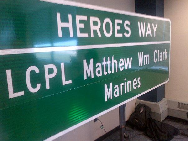 Lance Cpl. Mathew W. Clark's life and service to his country was commemorated Saturday with a Heroes Way Sign approved the the General Assembly.