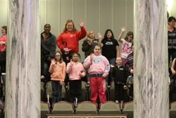 Teachers, students and chaperones from Drummond Elementary were introduced as special guests to members of the