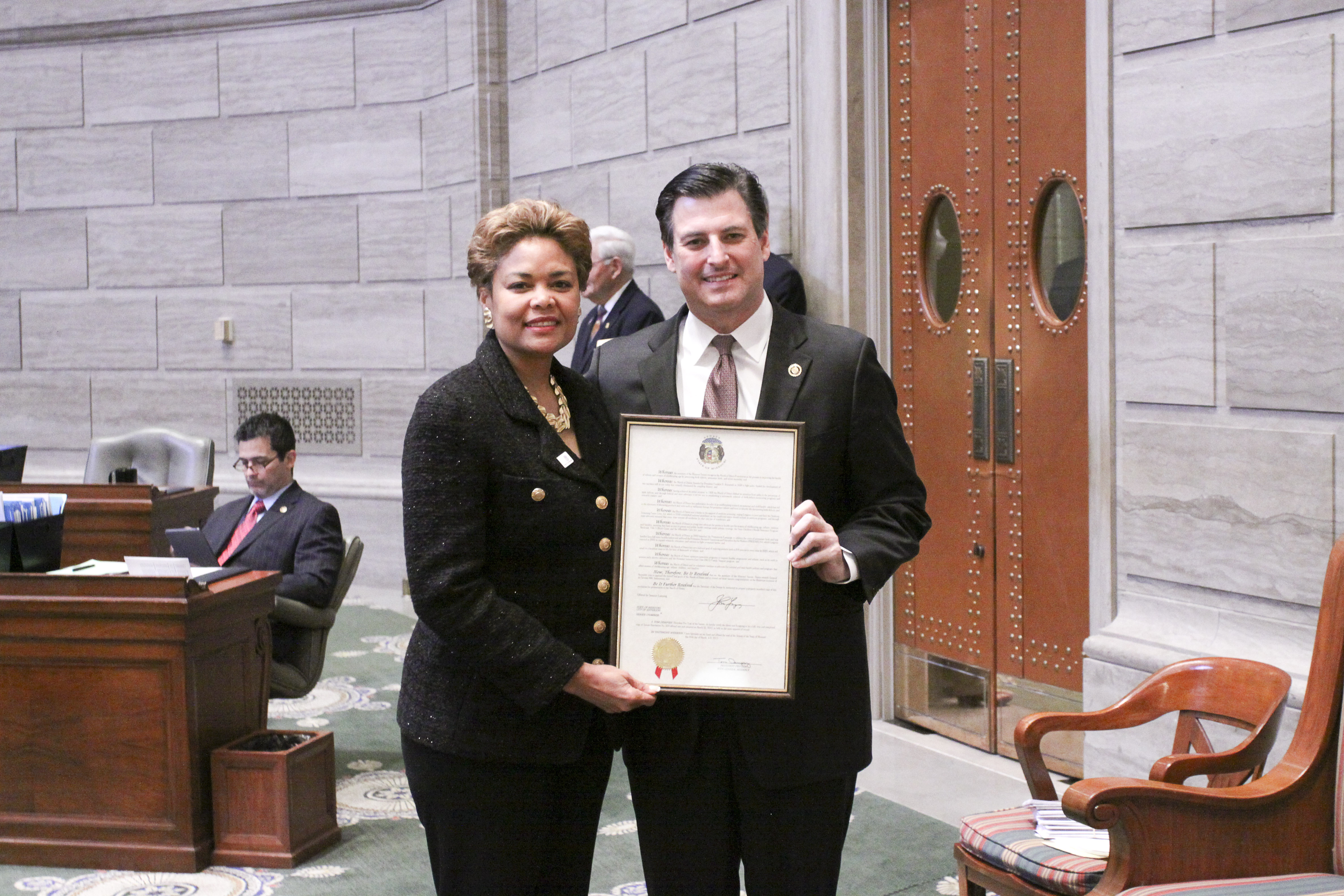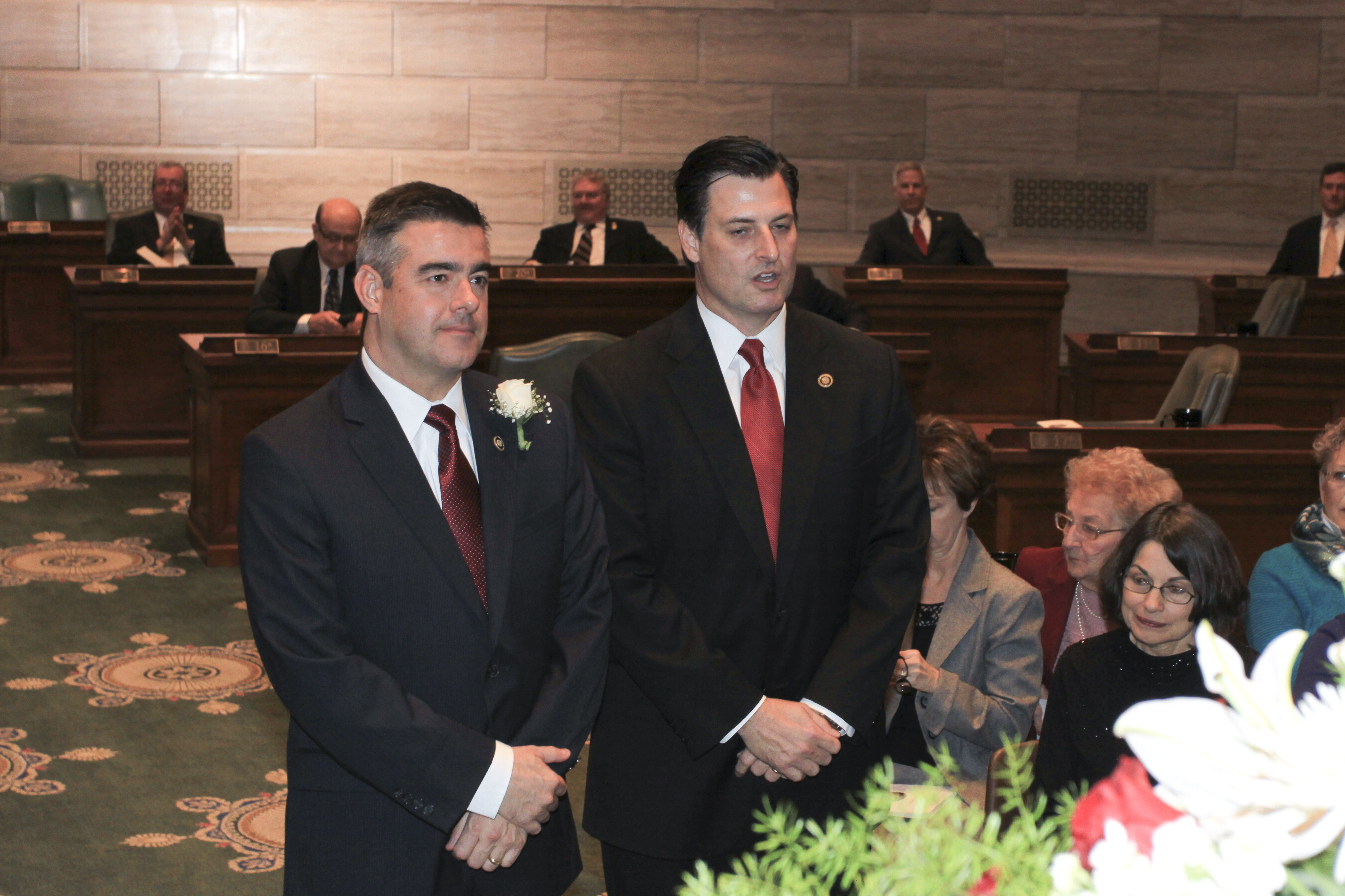 Sen. Lamping and Senate President Pro Tem Tom Dempsey, R-St. Charles, during the Senate Opening Day Ceremony held on