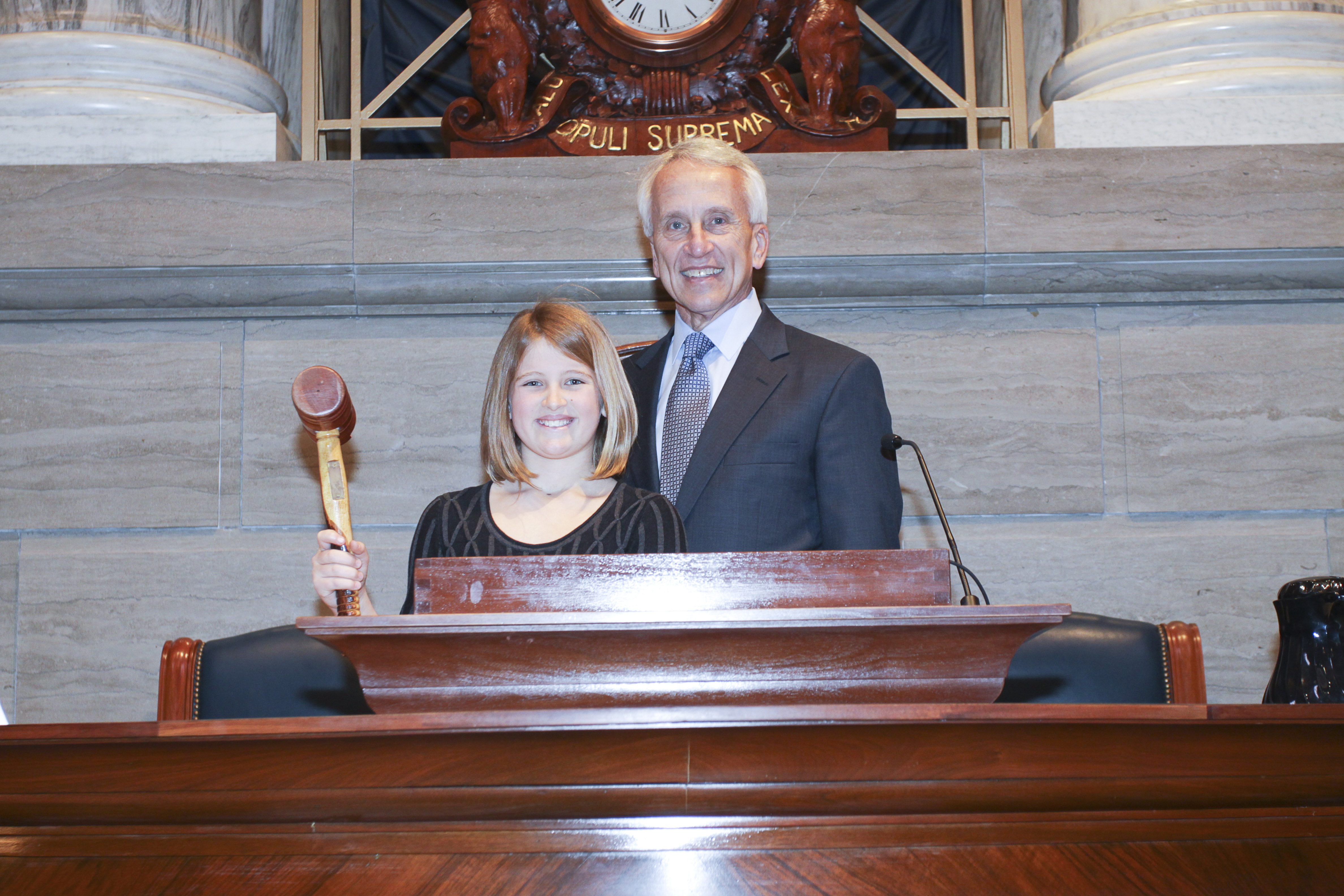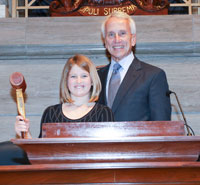 Mayor Keith Krieg and Gigi Mahley made the trip from Frontenac to Jefferson City and spent some time in the Senate Chamber at the dias. |