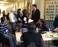 Sen. Lamping visiting with representatives of Paraquad during their visit to the Capitol. |