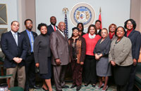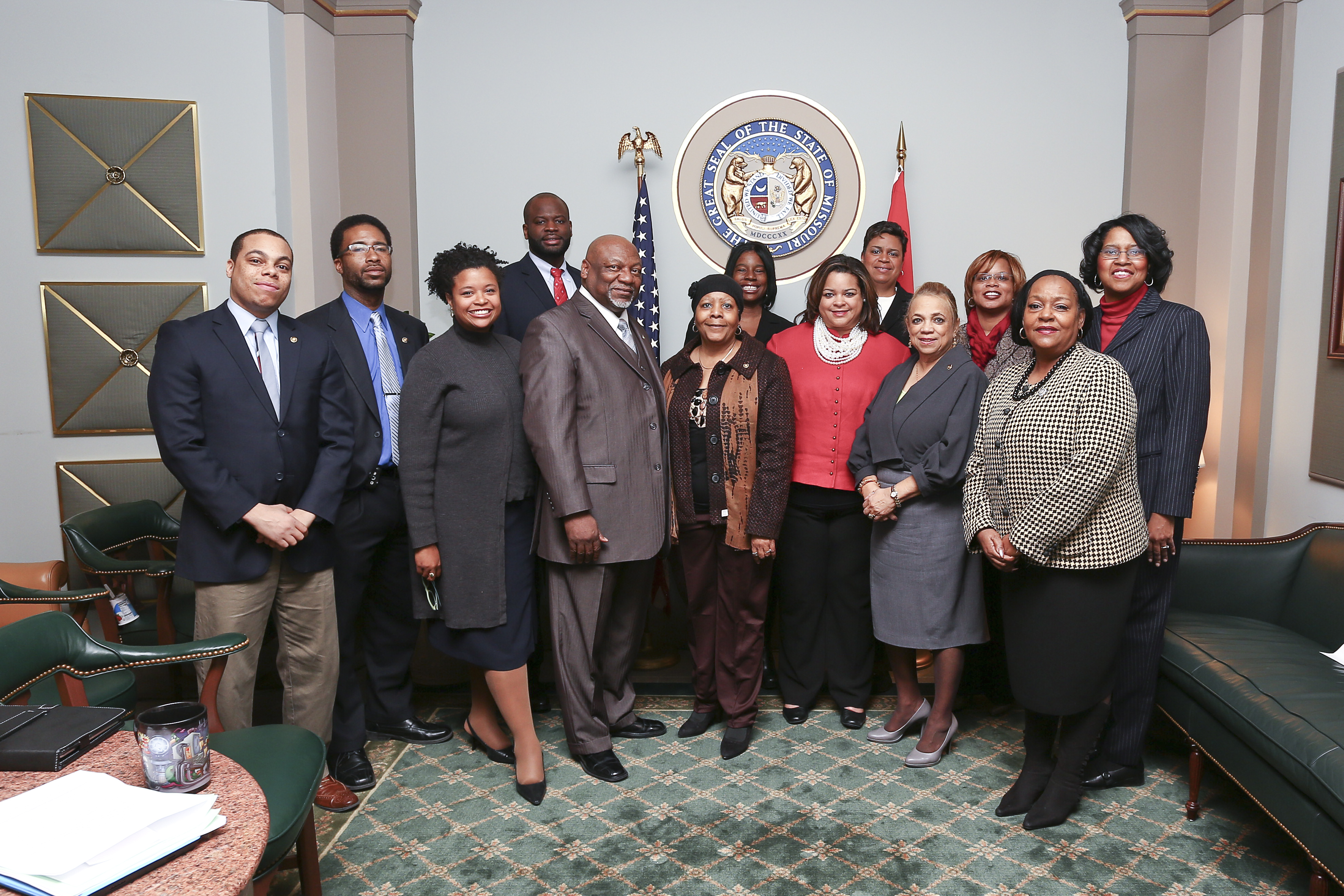 Members of the Legislative Black Caucus gather for a photo in the Senate gallery.