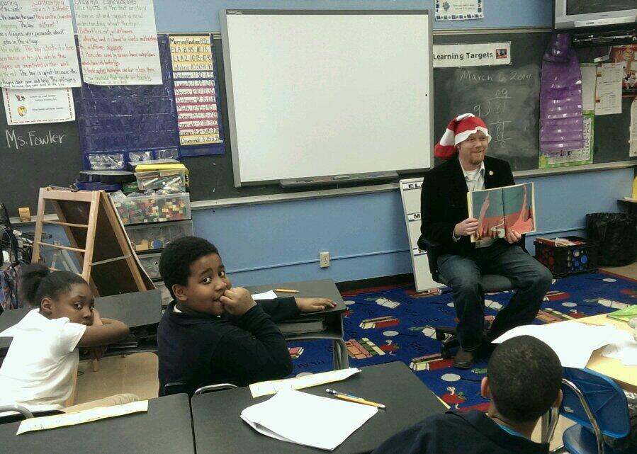 Sen. Holsman reads Dr. Suess to students at Ingels Elementary School in South Kansas City.