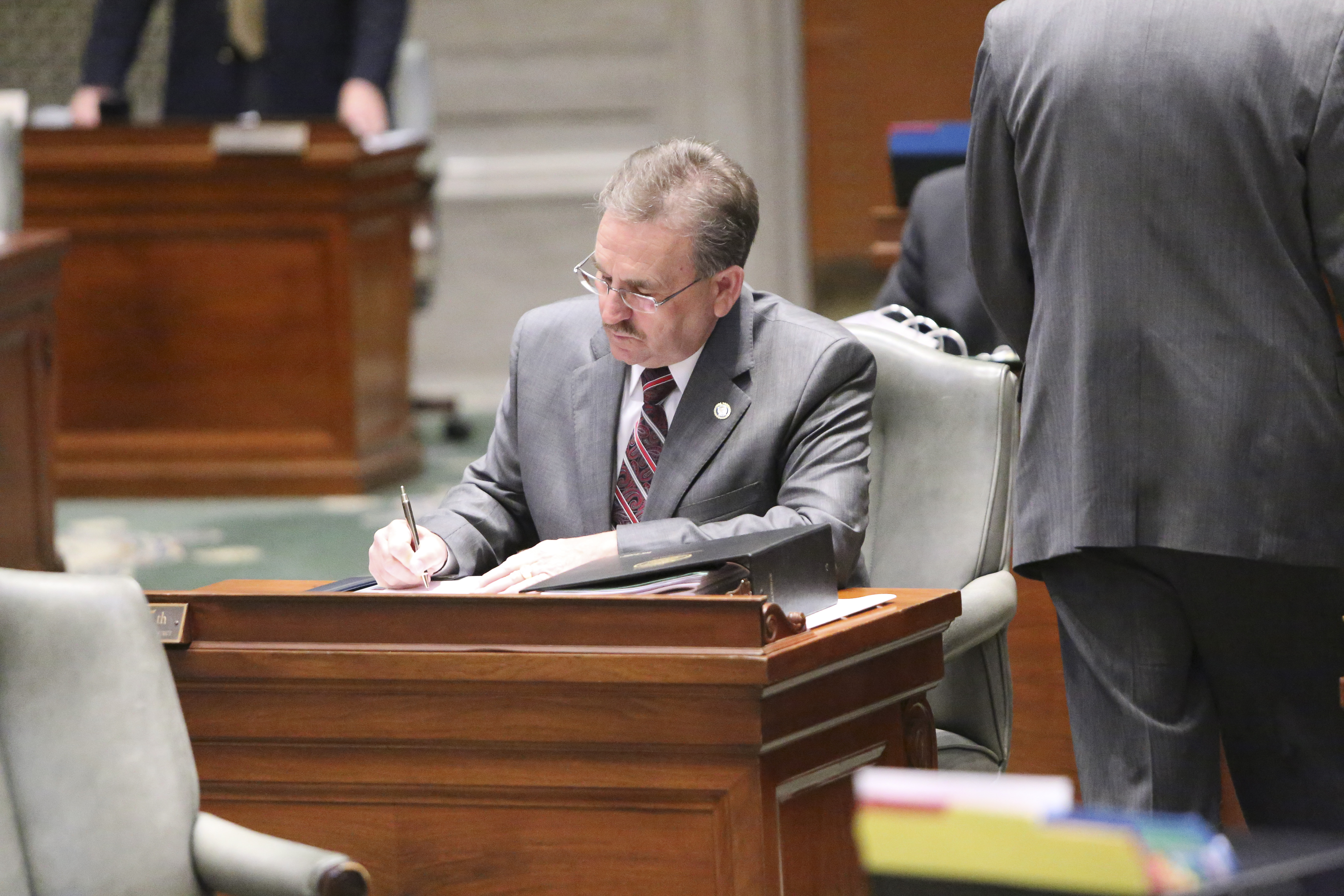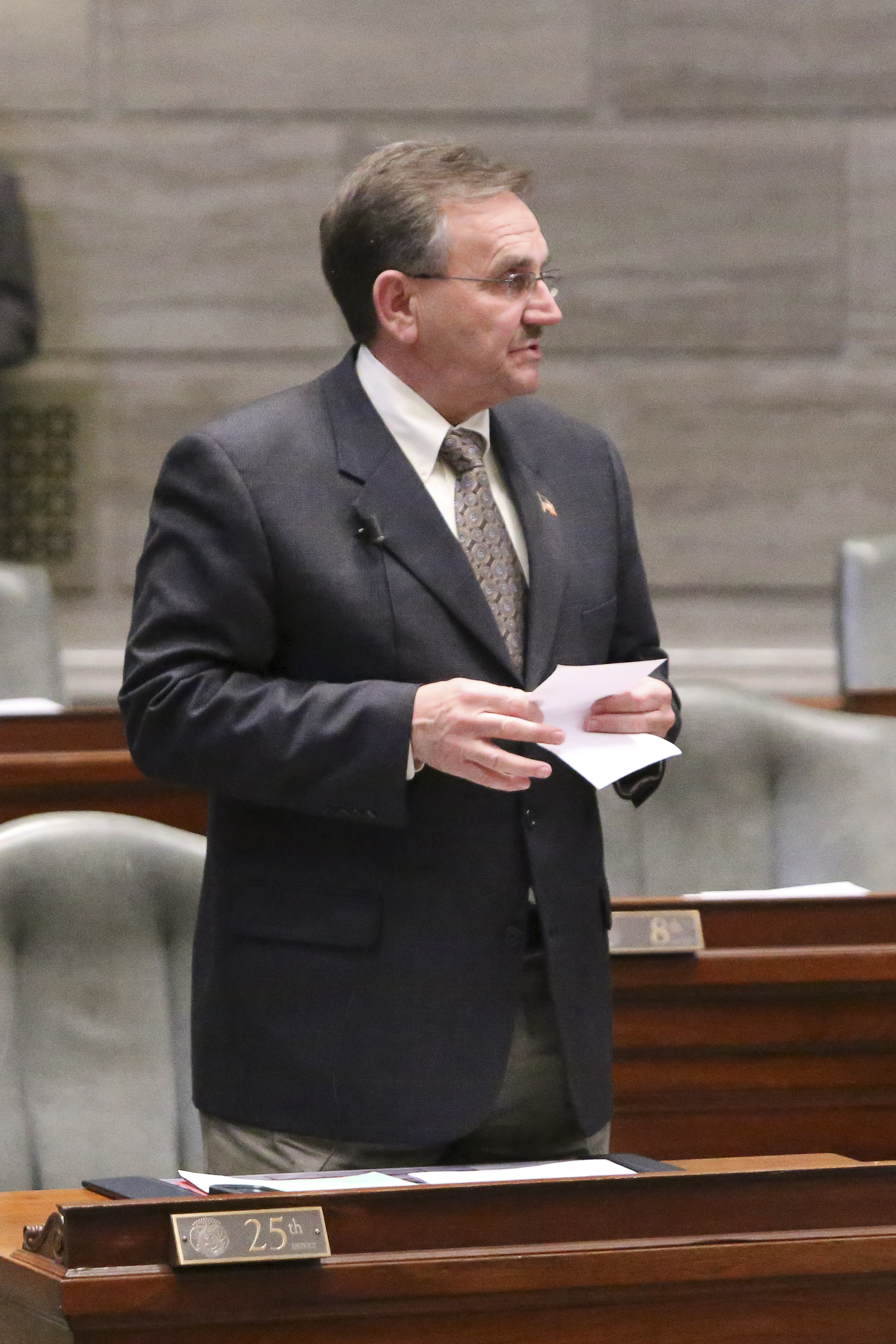 Sen. Brad Lager on the floor of the Missouri Senate on