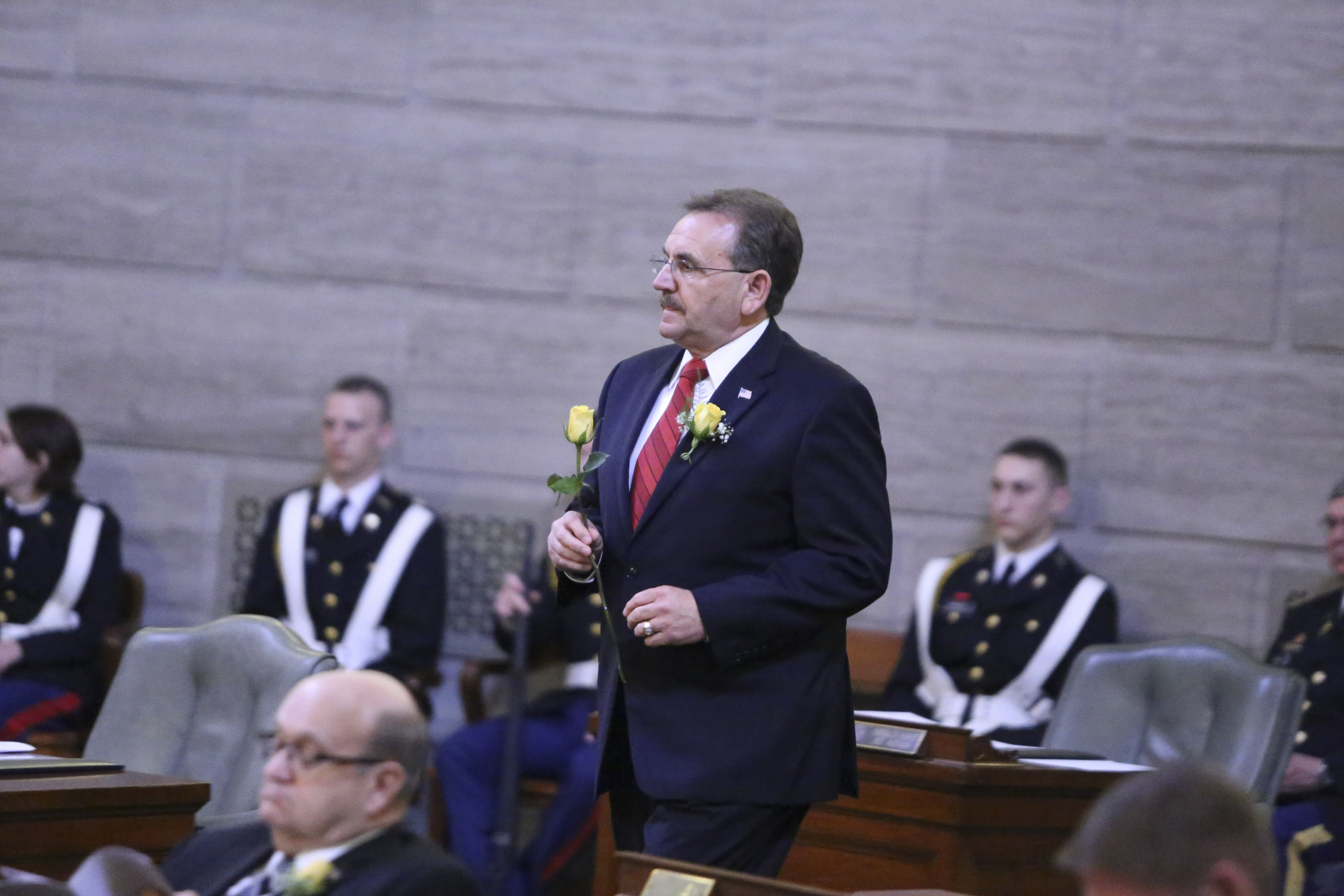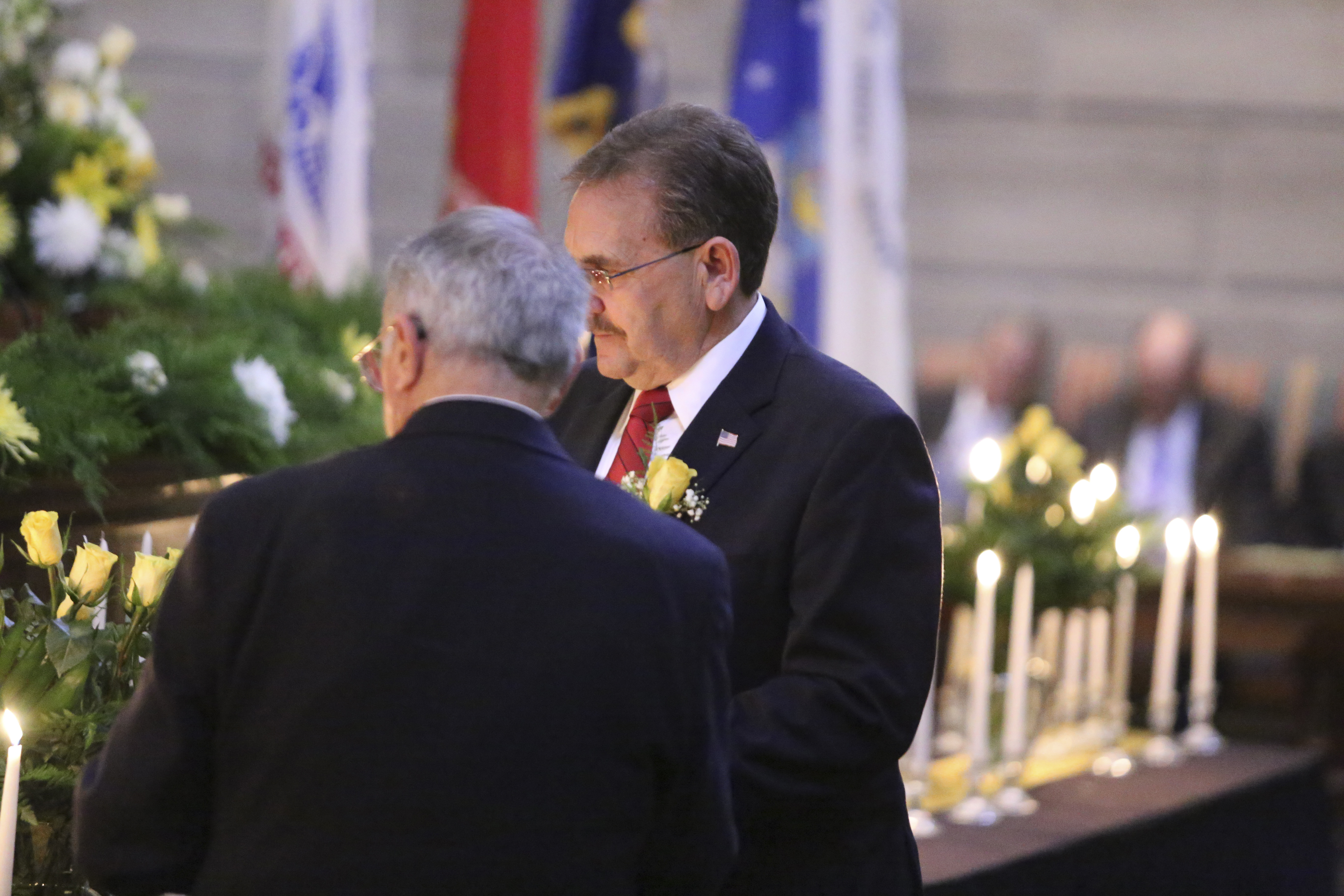 Senator Libla honored former members James F. Patterson and Danny Staples during the Memorial Service. |