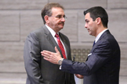 Sen. Libla discusses important issues with his colleague