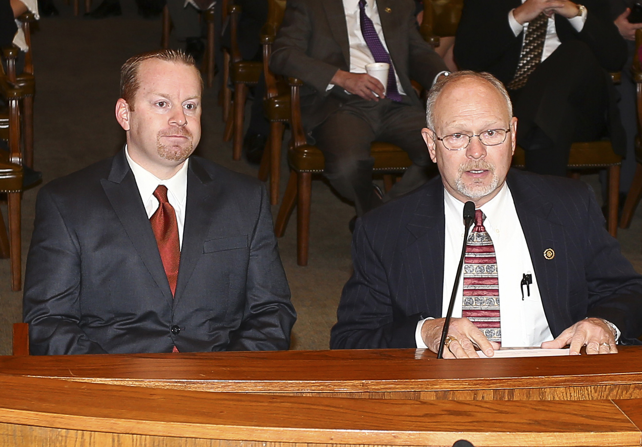 Senator Gary Romine, R-Farmington, right, sponsors local resident Dr. Bryan Chapman for his appointment to the Missouri Dental Board during the Gubernatorial Appointments Committee hearing on Wednesday, Jan. 22, 2014. |
