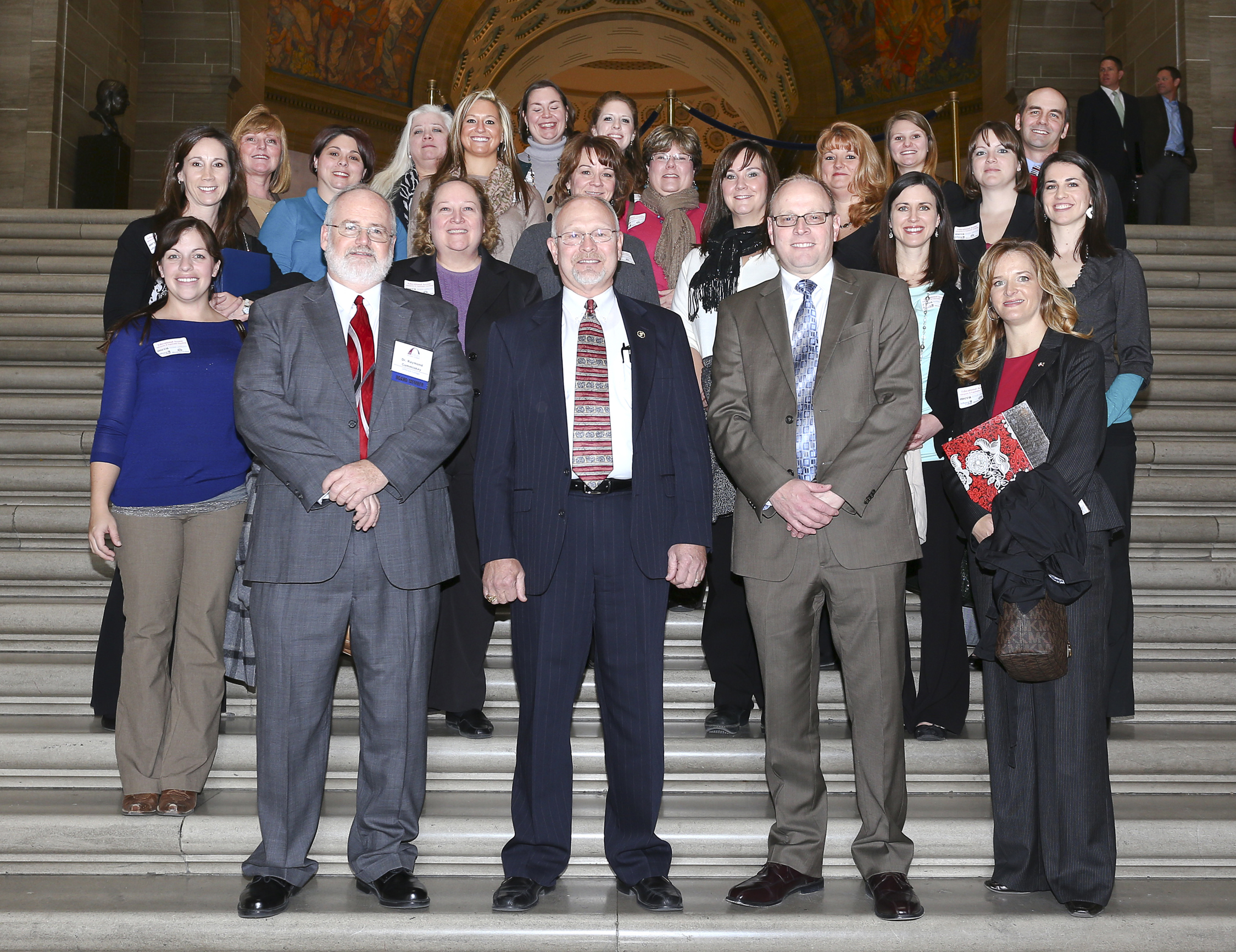 | Senator Gary Romine, R-Farmington, visits with Leadership Academy employees from Mineral Area College and Jefferson College along with their presidents, Dr. Steve Kurtz and Dr. Ray Cummiskey, during their visit to the Capitol on Wednesday, January 22, 2014. |