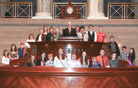 Senator Gary Romine and Rep. Elaine Gannon welcomed students and teachers from Sunrise School in DeSotot during their visit to the State Capitol on Wednesday, April 15. |