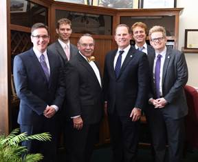 | Senator Schaefer visits with the new University of Missouri Chancellor, along with President Wolfe, Rep. John Wright, Rep. Caleb Rowden and Rep. Stephen Webber. |