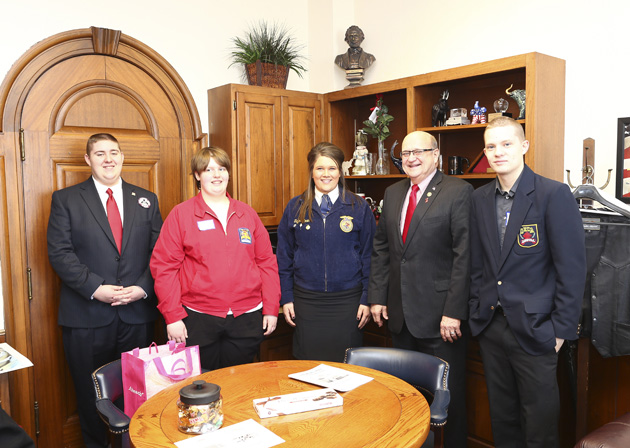 Above, two groups of FFA/Tech School students visit Sen. Brown in his office.