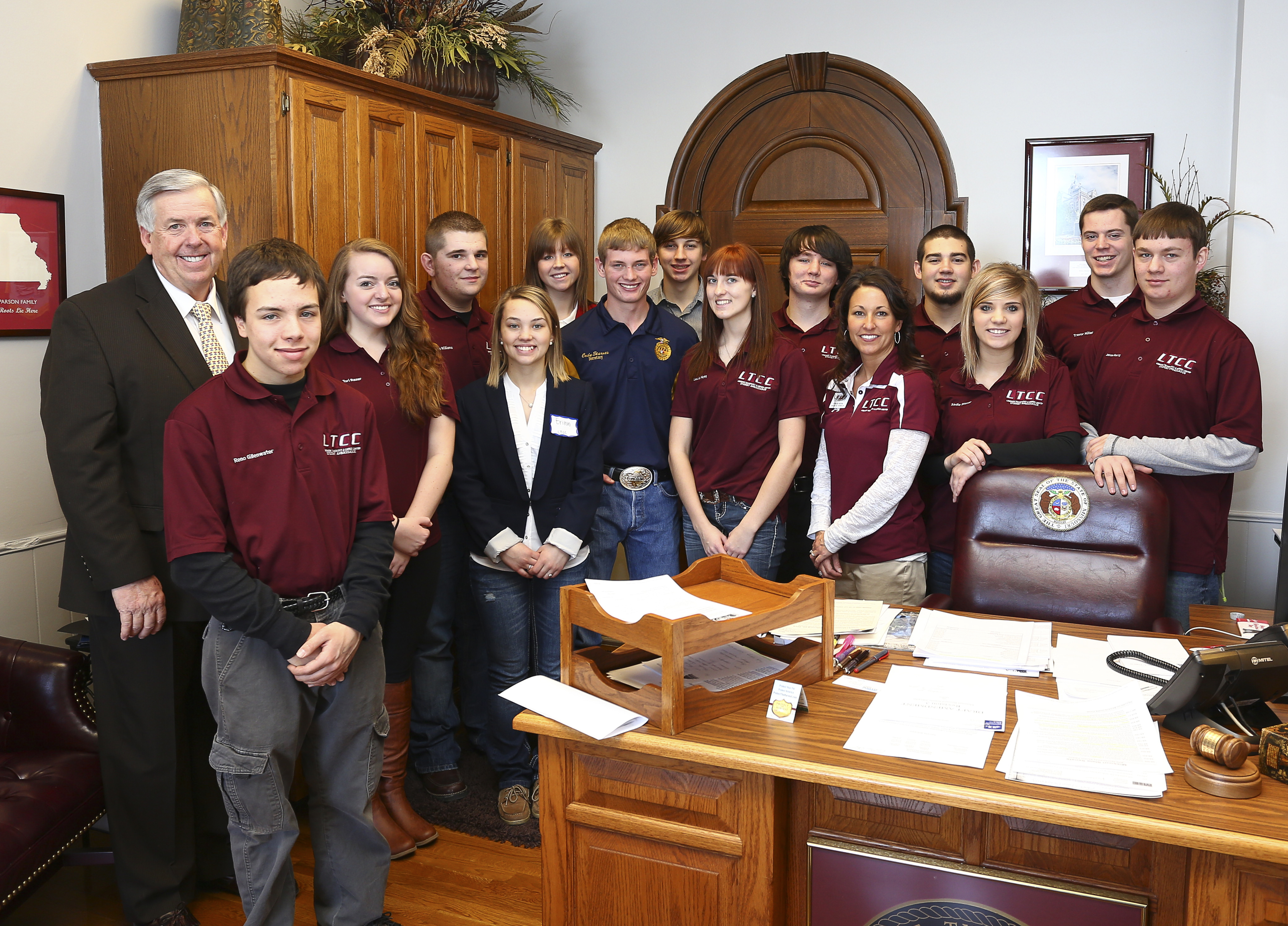 Visitors to the office this week included Mayor Elaine Horn, City Administrator Gary Edwards, 1st Ward Councilman Steve Galliher, 1st Ward Councilwoman Jo Lynn Turley, 3rd Ward Councilman Bob Cross, and 4th Ward Councilman Larry Stevenson, all of Sedalia; Dr. Kathryn Findley of Benton County; Gene Brockus of Osceola; Dr. John Howell of Bolivar; Renee Fiquet with a group of students from the State Fair Community College Dental Hygiene Program; Keith Davis with a group of students from the Career and Technical Student Organization from Lebanon; Wendy Jones and Grant Glor from Buffalo; Pettis County Commissioners Brent Hampy and Jim Marcum; and a large delegation of retired teachers attending the MRTA lobby day.