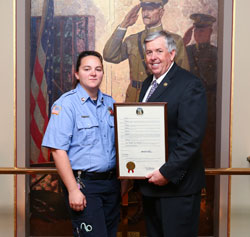 I was proud to present a Senate resolution to Brianna Becker-Bolivar enrolled in the OTC Fire Technology Program. |