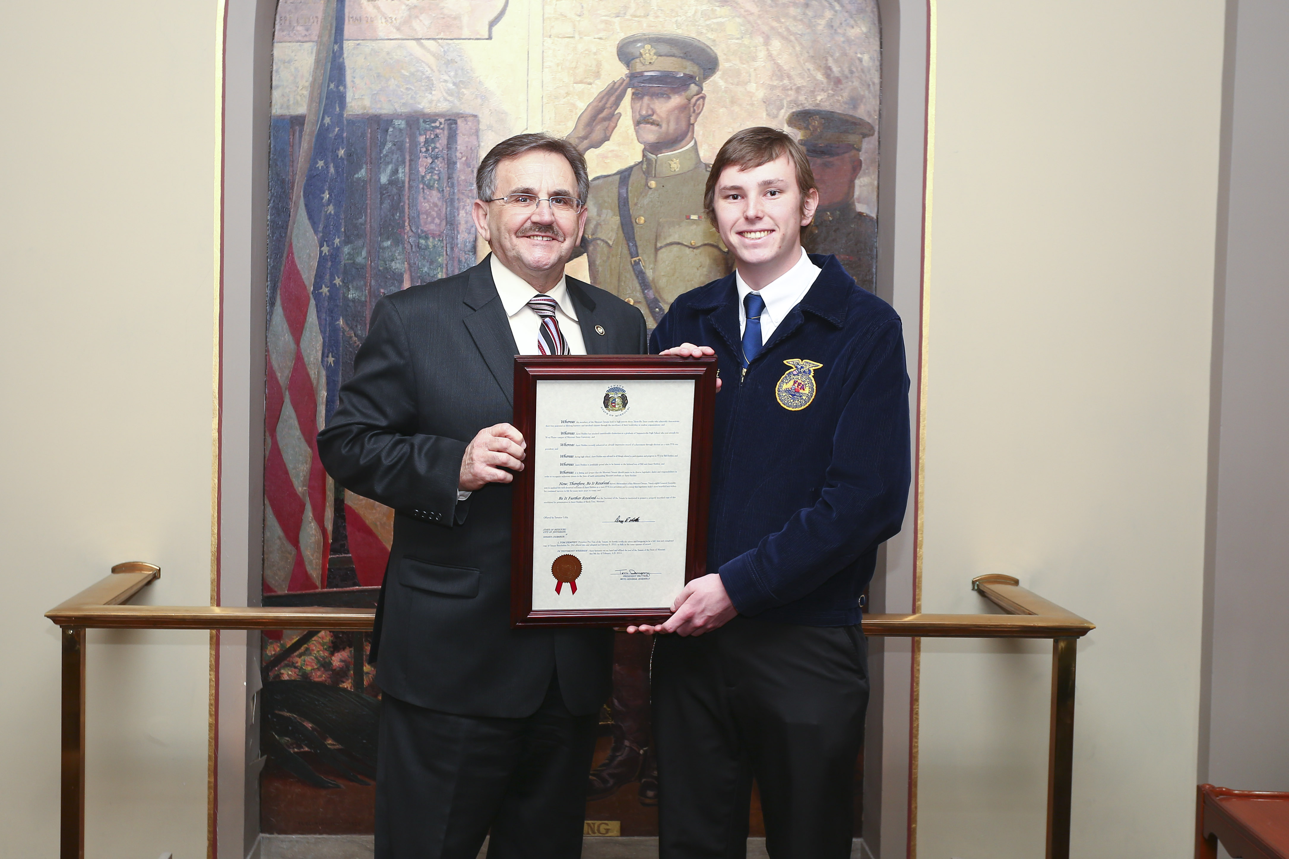 | Shown above, Sen. Libla, with Jaret Holden, from Sommersville, who visited the Capitol as part of FFA Day. |
