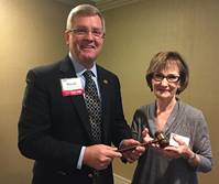 | Pictured are Missouri Senator David Pearce receiving the gavel from outgoing chair, Ms. Suzanne Morris, Illinois Board of Higher Education board member. |