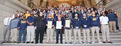 I had the pleasure of presenting the Battle High School Spartans Football team on Wednesday, Feb. 18 to the Senate body. In the first year of eligible district participation, Battle High School earned the State Championship in Class 5 when they defeated the Nixa Eagles 25 to 22. The team is led by head coach Justin Conyers and supported by several other coaches and parents. The parents not only contribute support on the field, but off the field as well by providing meals for both Battle’s and the opposing team’s players before and after each game. It is with this foundation that Battle High School Football team will continue to see success.