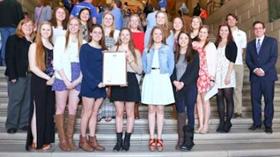 We were also very happy to host the Rock Bridge High School Girls Swimming and Diving Team in the Capitol this week. The Lady Bruins took First Place at the Missouri State High School Activities Association Girls Swimming and Diving Championship. The Lady Bruins attained this success with the leadership of coaches Laura Wacker, Zach Mertens, Emily Argotsinger, and Kelsey Arends. Members of the Championship team include Ashley Arneson, Althea Felton, Ellie Flanagan, Kate Forward, Alexis Hopkins, Bettie Logan, Olivia Nanneman, Lexi Peery, Kristi Seyer, Elinor Stanley, Kelley Tackett, Anna Willcoxon, Nicole Williams, Madison Wright, and Elli Zweifel – the daughter of State Treasurer Clint Zweifel.
