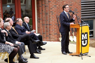 Senator Schaefer speaking at the ground-breaking ceremony of the Lafferre Hall renovations. |