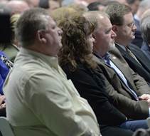 On Monday evening, I joined many of my colleagues at Ft. Leonard Wood to show support for that community as they battle proposed force-reduction cuts that would take many jobs and military personnel from the community. All Missourians support the military, but the Ft. Leonard Wood community goes above and beyond in their support and they rallied leaders from all across the state to show support for keeping the force at Ft. Leonard Wood intact. The governor, both of our U.S. Senators, most of the state Senate, and many of the House of Representatives joined hundreds of community members at this meeting. While Ft. Leonard Wood is not in the 26th District, it is an important part of our state and our area, and Chara and I were glad to attend the meeting to show our support for this military installation and for the community.