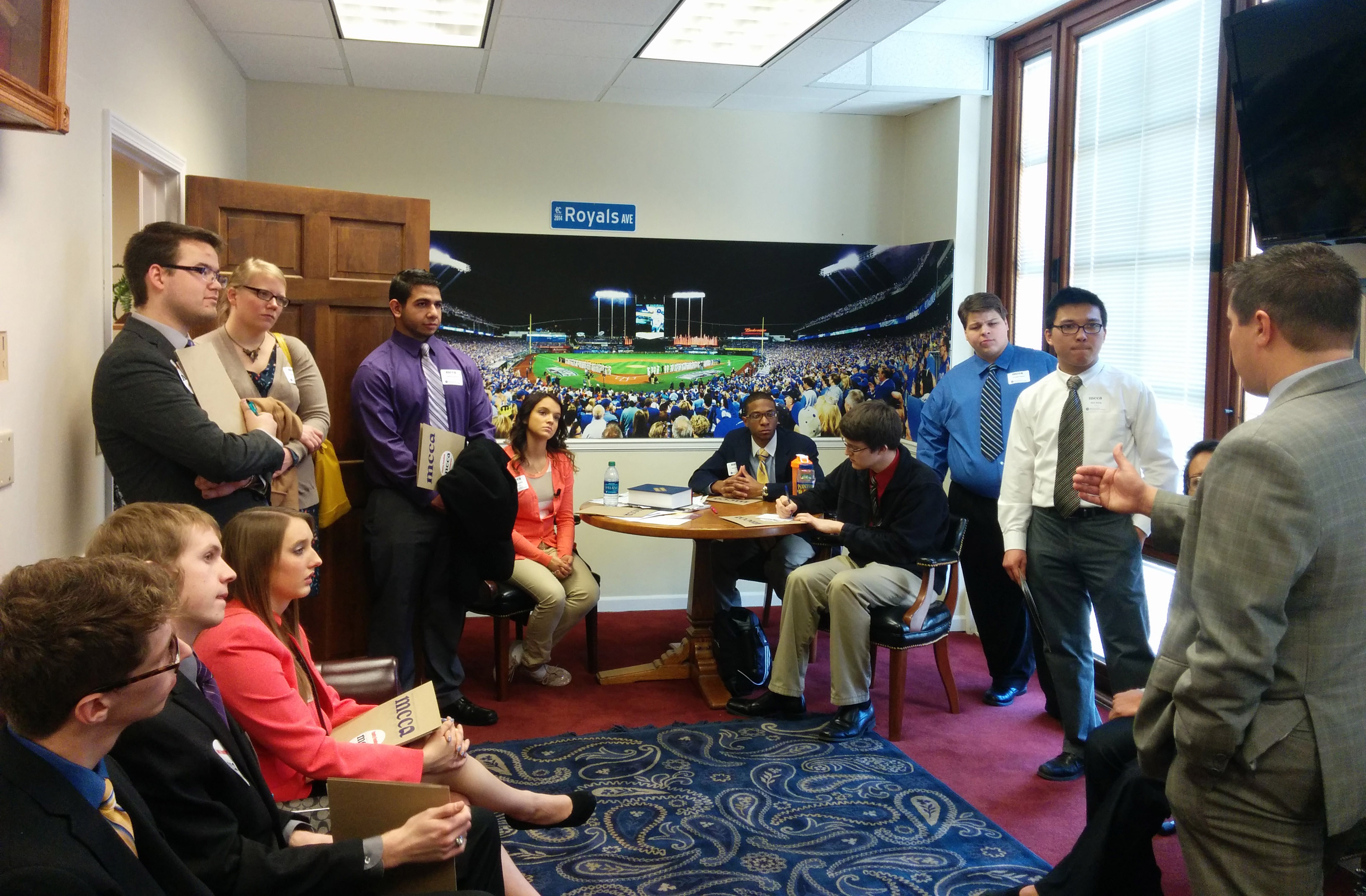 | Shown above, Sen. Silvey speaks with A+ students from Maplewood Community College who visited the Capitol this week. |