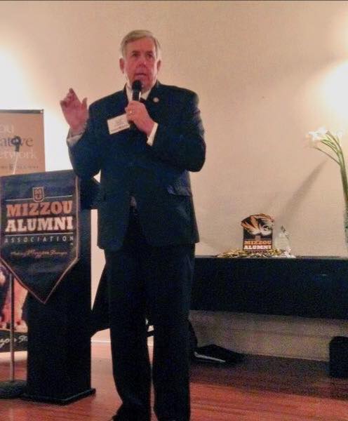 Above, Sen. Parson speaks after he receives the 2015 Henry S. Geyer Award from the Mizzou Legislative Network.