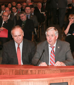 Above, Sen. Parson and former Sen. Delbert Scott during a hearing before the Senate Gubernatorial Appointment Committee. |