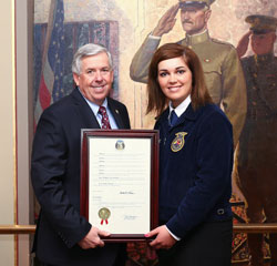 State leaders from FFA traveled to Jefferson City this week. I was pleased to present Claire Silvers-El Dorado Springs with a Senate Resolution honoring her accomplishments.