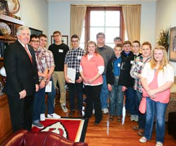 Youth from Polk & Hickory County 4-H UM Extension visiting Senator Parson in the state capitol.