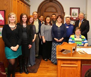 MSTA visiting Capitol – Kelsey Fish, Megan Richner, Katie Cohen, Walter Wingate, Gail Skalicy, Tisha Clawson, Jeff Stacy, Vicki Wingate, Chuck Martin, Lisa Funk, and Sen. Parson.