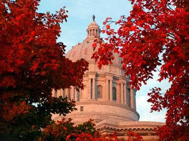 The fall colors help enhance the beauty of the State Capitol.
