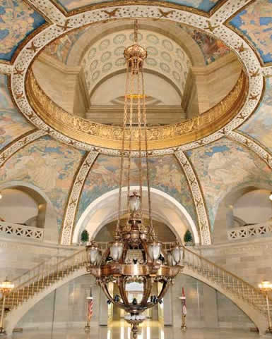 The majestic chandelier in the Capitol rotunda. |